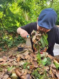 Simon beißt in Gartensalat(Kompost)
